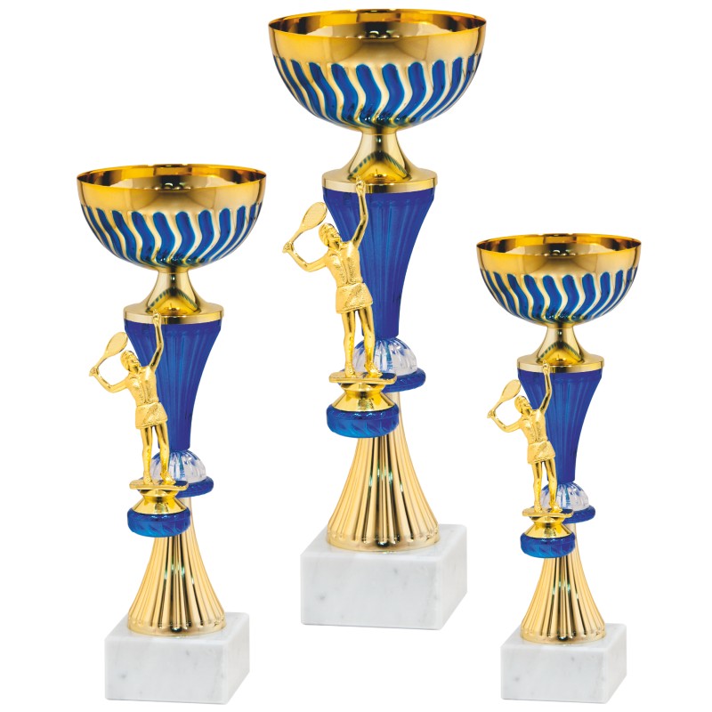 Univerzalni pokal 10220/ABC (komplet pokalov). Na voljo v velikostih 33/ 31/ in 29 cm cm. Posebnost pokalov 10220 so nastavki za figure, s katerimi ponazorimo športno disciplino. V ceno so vštete figure. Ob naročilu opozorite prodajalca, katere figure želite imeti na pokalih.
